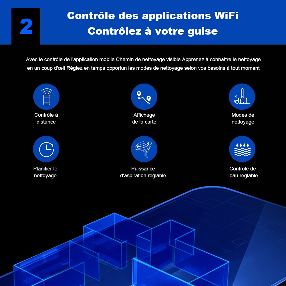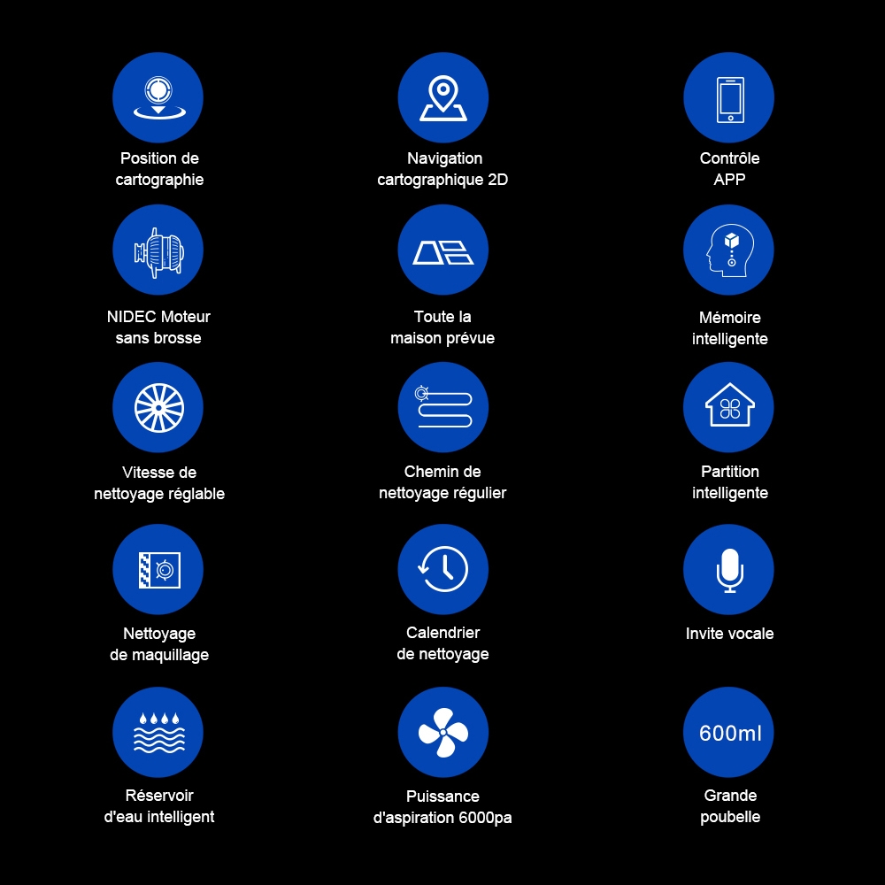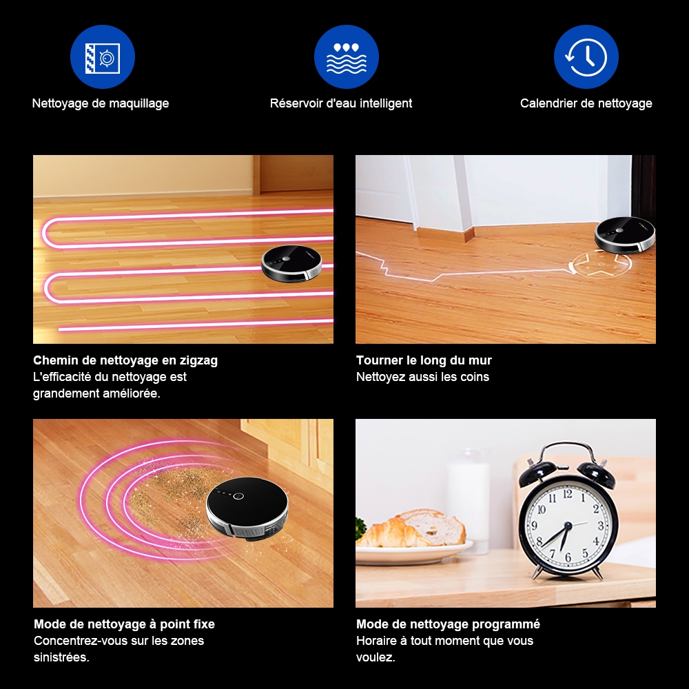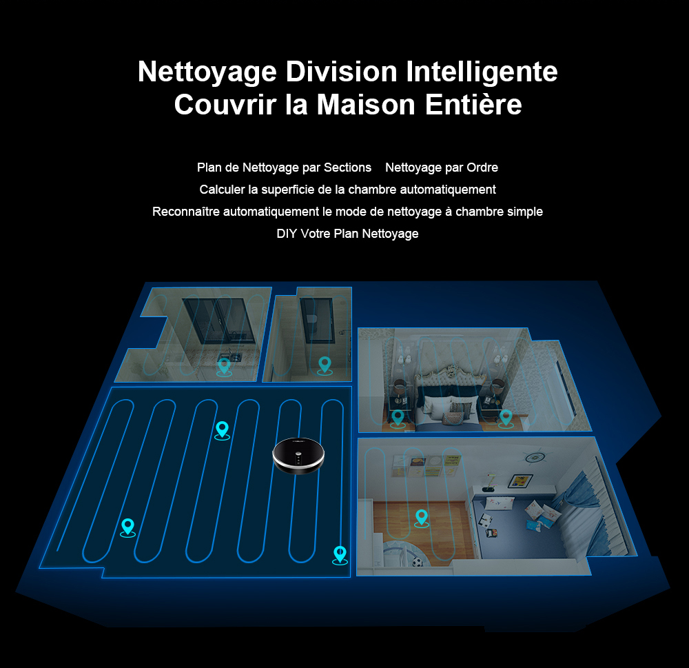 Avec une application sur votre téléphone, vous aurez accès à de nombreuses fonctionnalités. Vous pourrez contrôler votre aspirateur à distance, choisir le mode de nettoyage que vous souhaitez, choisir la puissance d’aspiration mais également planifier le moment de nettoyage. Avec ce produit, votre intérieur restera toujours propre !