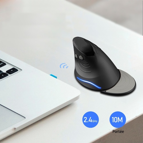 Votre souris fonctionne sans fil, vous devrez simplement mettre le récepteur dans un port USB de votre ordinateur, votre souris le détectera et se connectera. Elle a une portée d’environ 10 mètres et un signal stable, ne craignez donc pas les déconnexions inopinées.