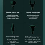 Ce mini pistolet de massage vous sera vendu avec 4 embouts différents, selon le type de massage que vous souhaitez faire : une tête de massage sphérique, une tête de massage en forme de U, une tête de massage en cône, une tête de massage à dents de loup.