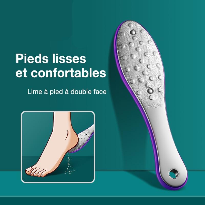 Etape 1 : Utilisez la surface rugueuse pour enlever les callosités et les peaux mortes.
