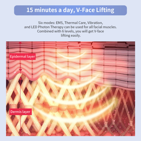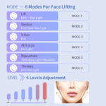Vous aurez le choix parmi 6 modes. Vous pourrez choisir celui que vous souhaitez en fonction de votre envie comme par exemple le mode lift ou bien encore le mode anti-acnรฉ.