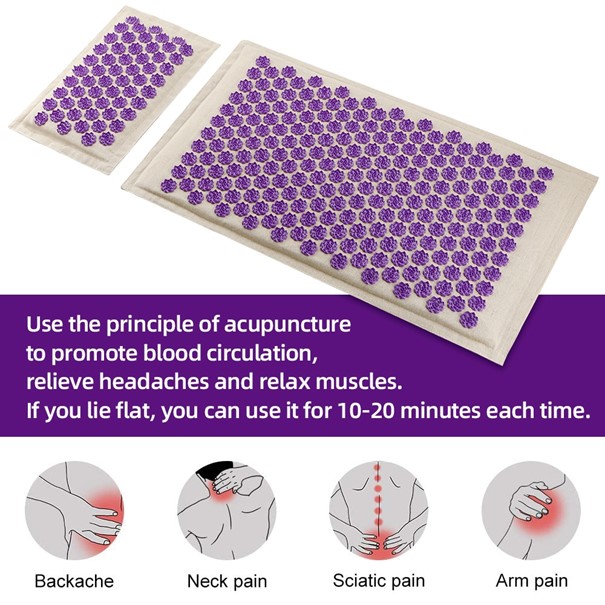 Plus de 200 cônes à pointes pour venir faire pression sur votre réseau nerveux et sanguin, libérant ainsi oxygène et endorphine pour détendre et soulager vos muscles. Le tapis d’acupression masse et stimule votre système pour vous procurer une sensation de bien-être.