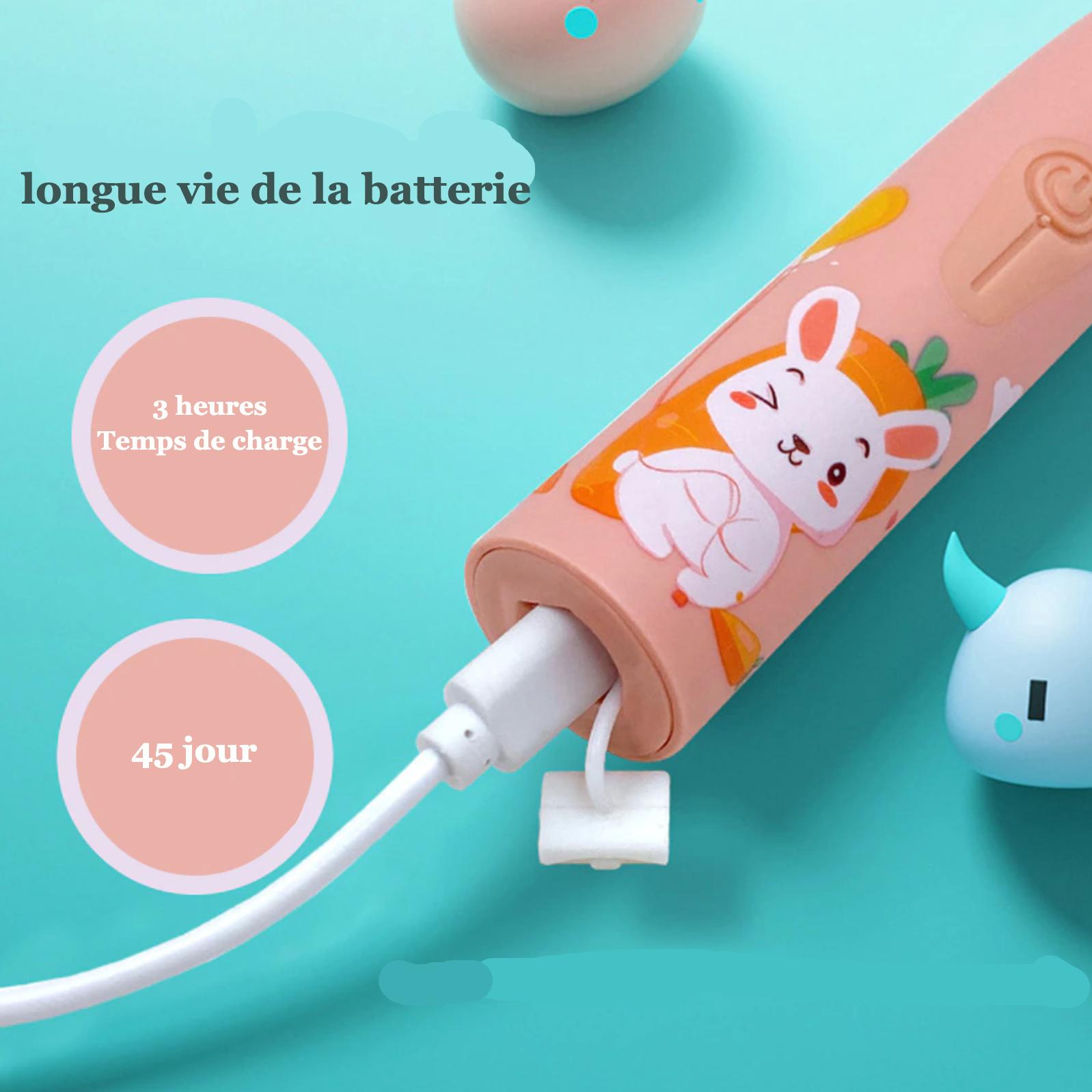 Cette nouvelle brosse à dents pour les plus jeunes de notre maison utilise une fréquence de vibration de 19800 fois par minute, avec un son très faible mais offrant un nettoyage efficace de la cavité buccale des enfants.