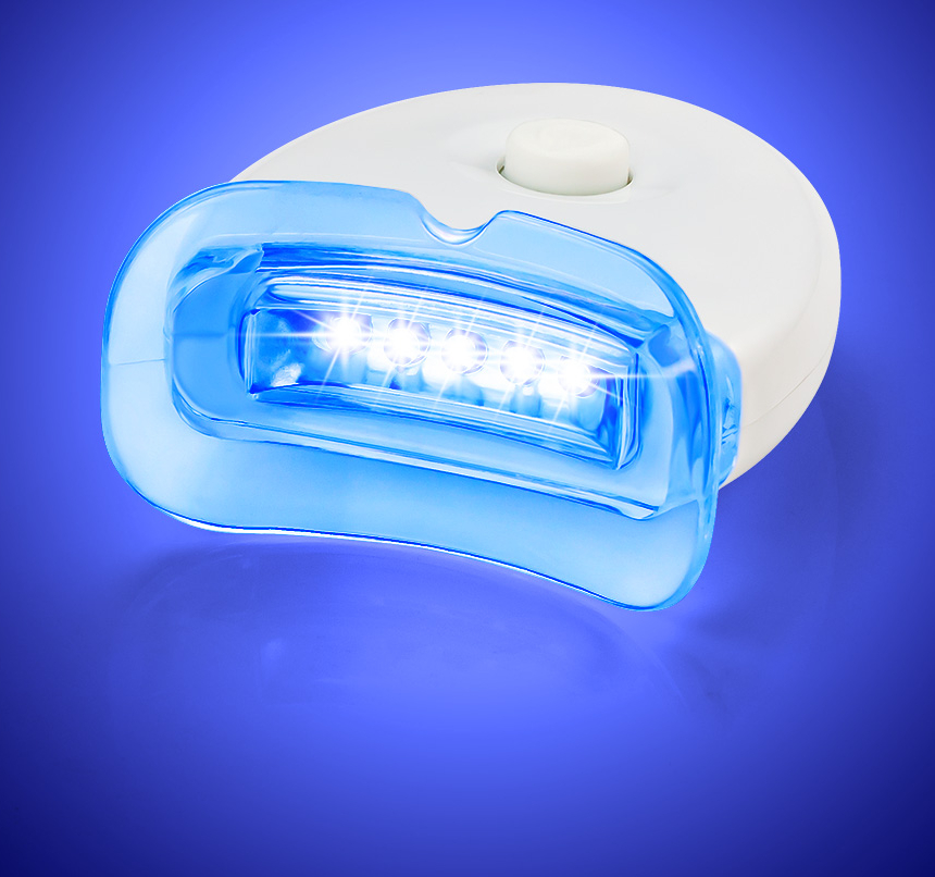 3- Appliquez le gel de blanchiment des dents dans le plateau bas puis allumez la lampe LED et restez 15 min.