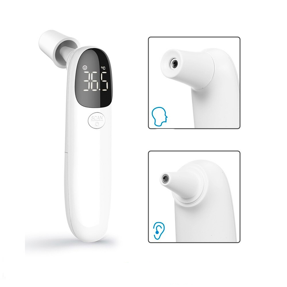 Ce thermomètre est doté d’un capteur infrarouge très réactif, avec l’embout de base vous pouvez le mettre dans votre oreille, mais il est également possible de l’utiliser frontalement en y ajoutant l’autre embout (fourni dans la boîte), ainsi il est deux-en-un !