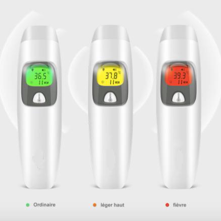 L’écran affiche 3 couleurs selon la température obtenue, vert si normale, jaune pour une fièvre légère et rouge pour une fièvre plus élevée. Avec ce système d’affichage facile à lire, tout le monde pourra l’utiliser.